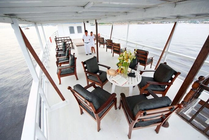 Sakte stevner Amazonasfartøyet langs elven når regnskogen våkner til liv. Tropiske frukter og ferskpresset juice står og venter på mahognybordet i den lille restauranten. Rundt oss flyr tukaner og papegøyer mens de rosa delfinene svømmer forbi i elven.De kyndige naturguidene hjelper oss å se og forstå det komplekse samspillet mellom flora og fauna i regnskogen. Med bare ni lugarer om bord på båten blir opplevelsen personlig og nær både naturen og de mennesker som bor dypt inne i Amazonas.