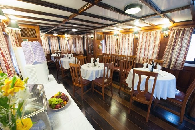 Fartøyet er over 25 m langt og har ni lugarer, alle utrustet med vindu, luftkondisjonering og bad. Om bord fins et observasjons- og soldekk, bibliotek samt en salong der den vellagde maten serveres. Nyfanget fersk fisk bys ofte til middag.
