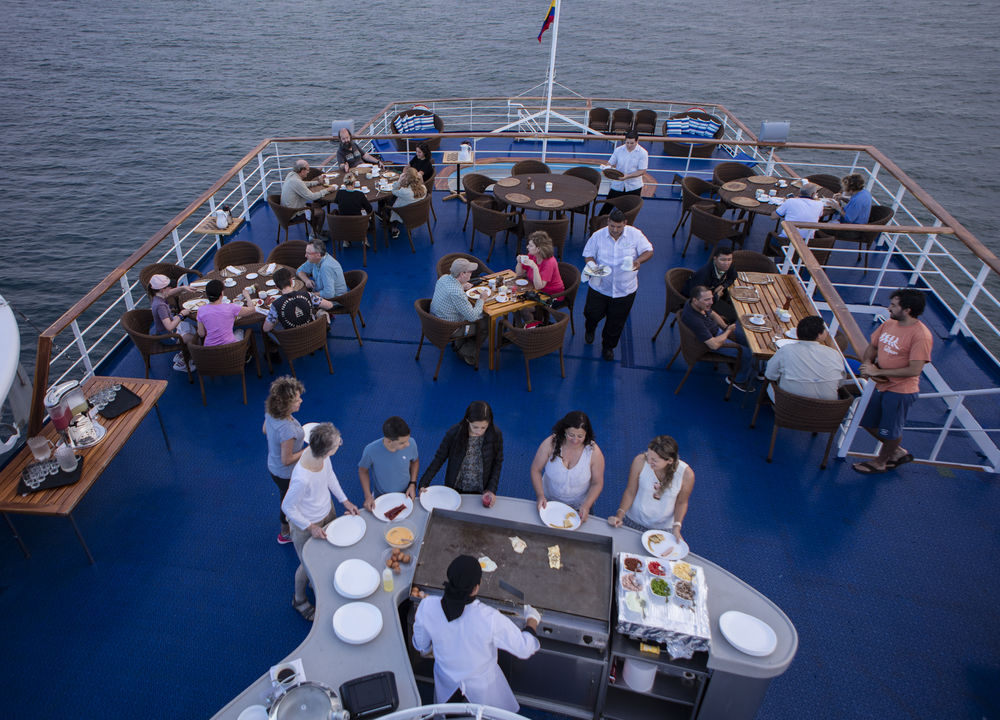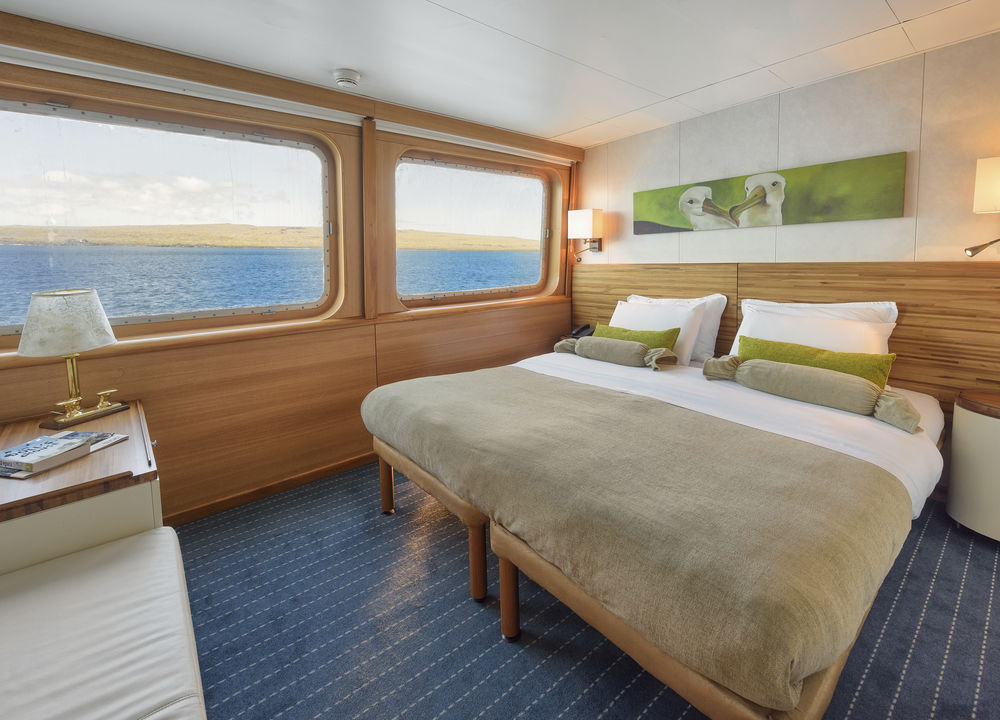 Transfer på morgenen fra hotellet til innriksflyplassen i Quito for tre timers flyreise til de unike Galapagosøyene. Vi går ombord M/V Santa Cruz som ligger for anker ved hovedøya Santa Cruz. Om bord serveres lunsj, kapteinen og hans besetning ønsker velkommen. Første stopp blir bukten Las Bachas på øya Santa Cruz nordlige kyst. Her fins arter av vadefugler, deriblant flamingo. Før middagen serveres får vi en gjennomgang av dagens observasjoner og morgendagens aktiviteter. OBS! Fartøyets reiserute kan endres med kort varsel avhengig av vær, havstrømmer og nasjonalparkens henvisning