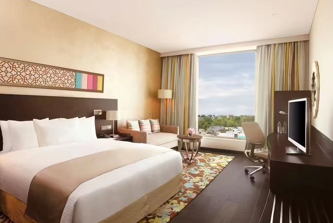 Etter pass- og tollformaliteter møter guiden oss på flyplassen. Reisen fortsetter langs motorveien til Jaipur, hovedstaden i delstaten Rajasthan. Underveis (cirka 6 timer) passerer vi gjennom den indiske landsbygda. Det krigerske fortiden vises tydelig i form av festninger og borger på fjell og klipper. Man begynner å ane at Thar-ørkenen ikke er langt unna. Jaipur kalles "Den rosa byen" både fordi mange bygninger er oppført i rød sandstein – noe som er særlig tydelig i den gamle bydelen – og fordi maharajaen i 1876 beordret at alle bygninger skulle males rosa i forbindelse med et besøk av prinsen av Wales. Rosa symboliserer velkomst. Innsjekking på hotellet, og kvelden er til egen disposisjon. Middag på hotellet.